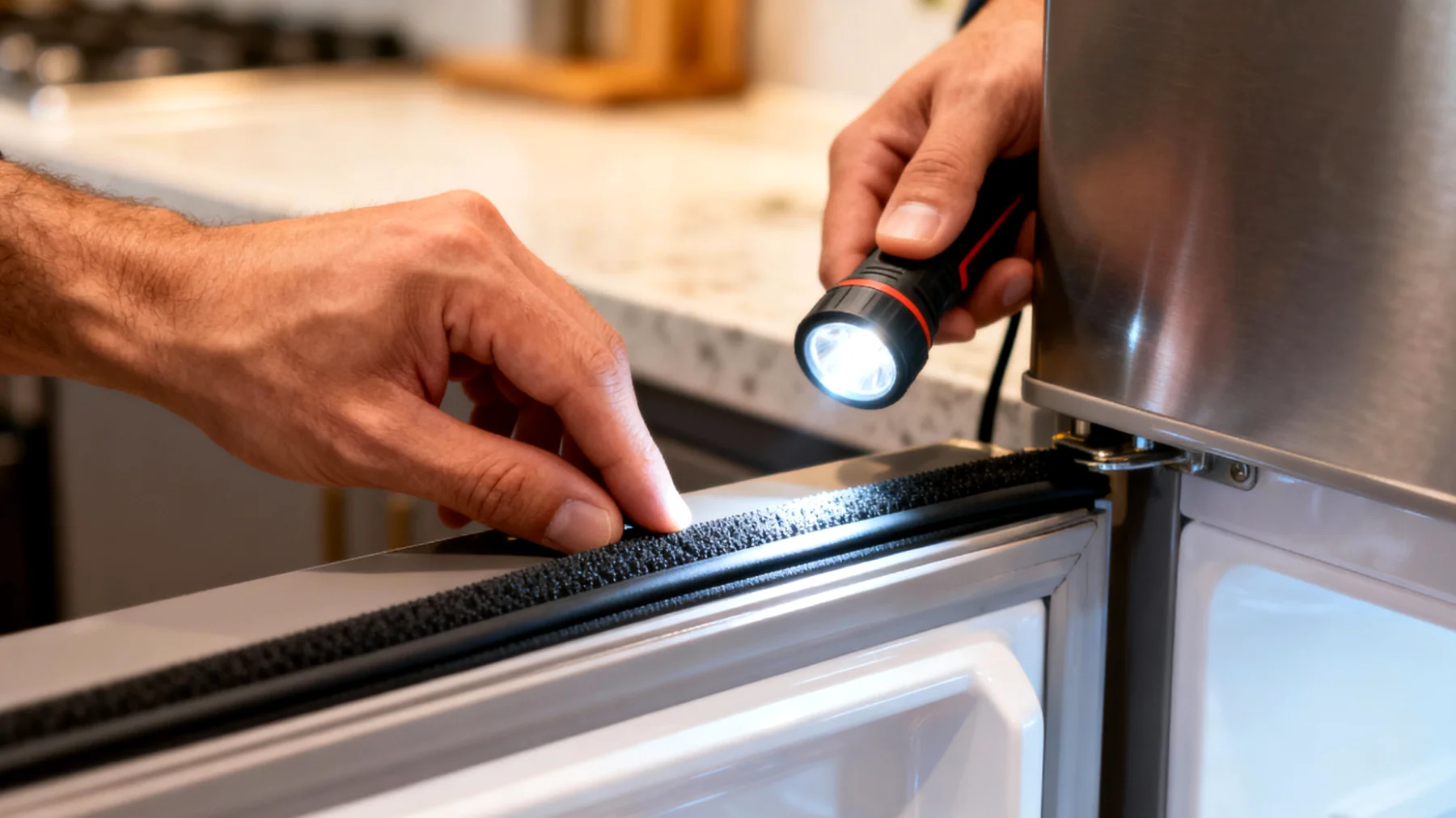 Una guarnizione inefficiente lascia passare aria calda dall’esterno, anche se apparentemente lo sportello sembra chiudersi bene. Il problema è che questo passaggio non sempre è visibile a occhio nudo: non serve che la guarnizione sia completamente staccata per compromettere la tenuta termica. Basta che sia indurita, deformata o sporca per creare micro-fessure attraverso cui l’aria entra continuamente, costringendo il frigorifero a lavorare molto più del necessario.