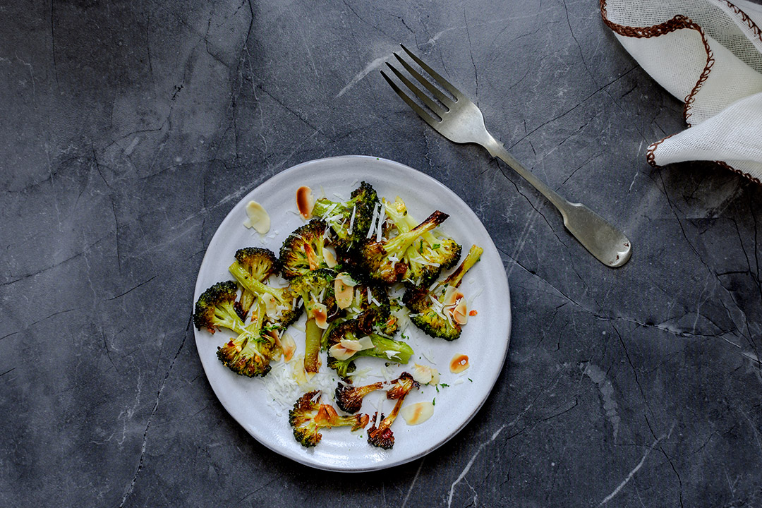 Girateli con una pinza da cucina e proseguite la cottura per altri 5-6 minuti. Servite i broccoli croccanti, caldi o a temperatura ambiente.