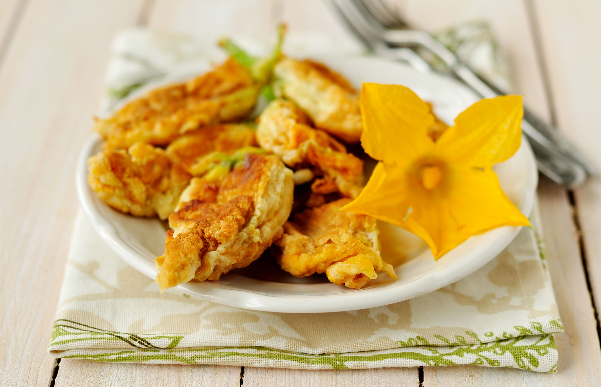 Immergete i fiori di zucca nella pentola con l’olio uno o due alla volta per non far abbassare eccessivamente la temperatura dell’olio; friggeteli per qualche minuto fino a quando saranno dorati e croccanti.